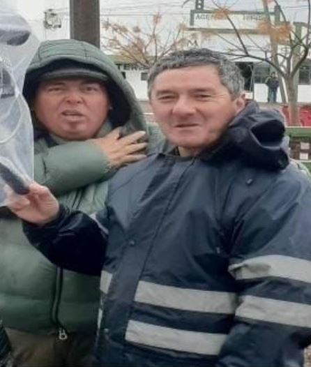 Como recuerdo, la foto que le sacamos el 7 de setiembre del año pasado junto a Anselmo trabajando bajo la lluvia.