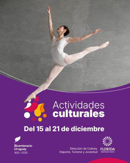 Durante la semana del lunes 15 al domingo 21 de diciembre, Florida, Sarandí Grande, Casupá y Cerro Colorado son y serán escenario de una intensa agenda cultural que incluye cierres de cursos, espectáculos musicales, danza, teatro, festivales populares y propuestas abiertas a la comunidad.