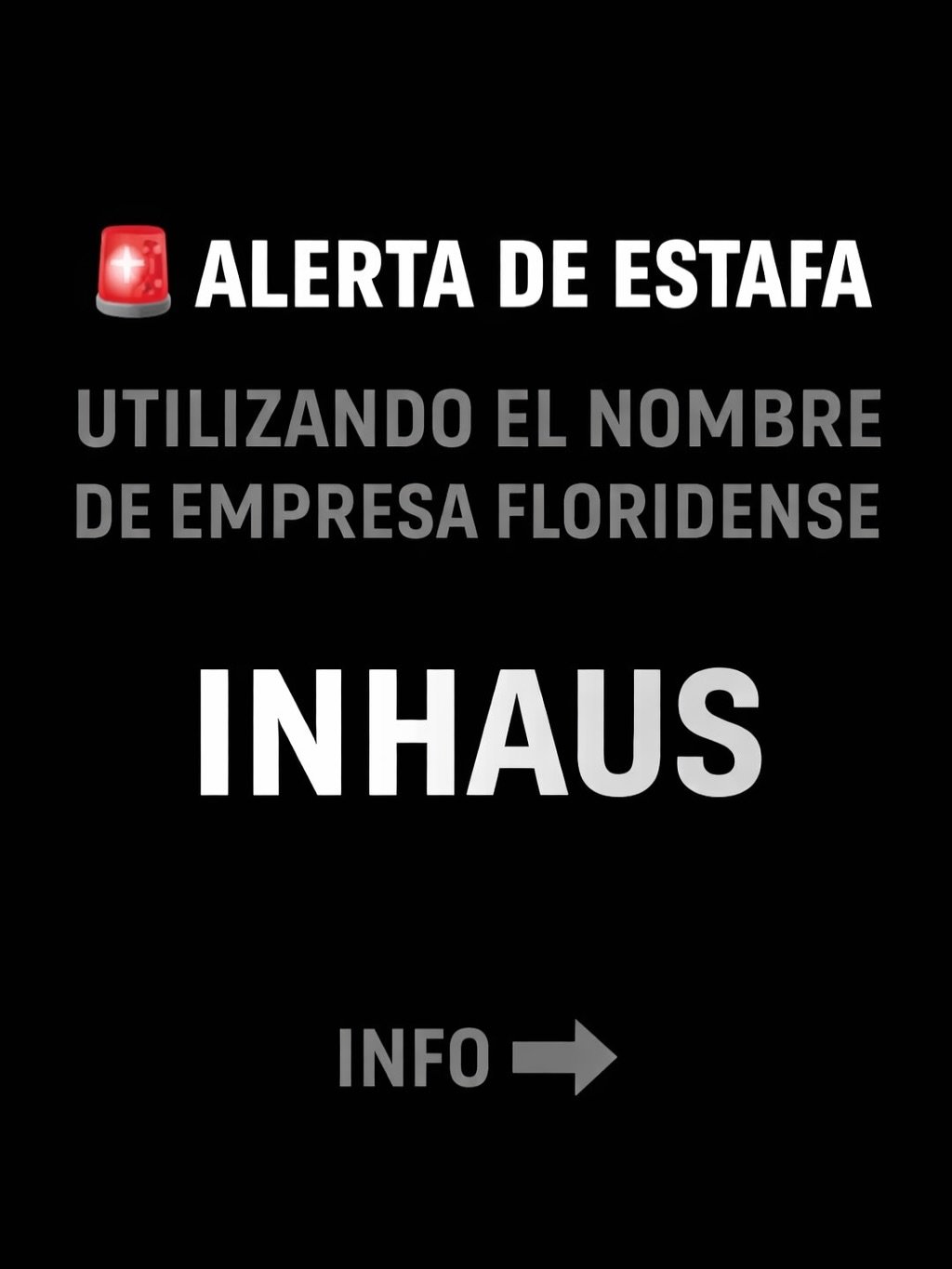 Según la advertencia difundida, la empresa mencionada es INHAUS, por lo que se exhorta a la comunidad a mantenerse atenta, informarse y extremar precauciones para evitar caer en posibles estafas.