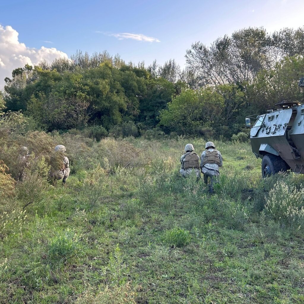 Durante la semana, la Sección 1 de la Compañía de Fusileros Mecanizada “Leopardo” desarrolló entrenamientos vinculados al embarque y desembarque de vehículos, desplazamientos en el terreno, técnicas de acción inmediata tanto embarcados como desmontados, así como la confección de reportes.