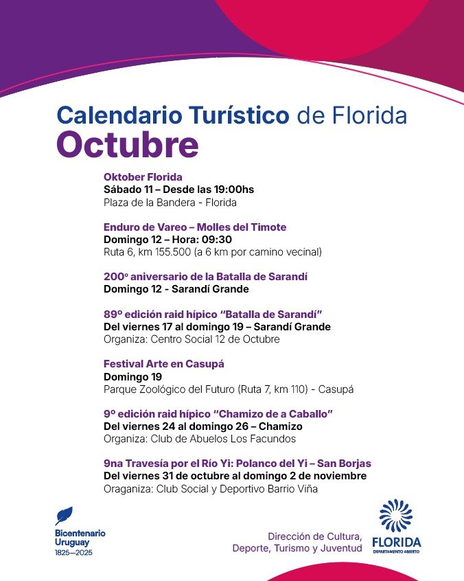 Florida Calendario Turístico de Florida octubre 2025 1 de octubre de 20251 de octubre de 2025 Seguí nuestras redes para conocer más información. DestinoFlorida #TurismoFlorida #DestinoFloridaUruguay Relacionado