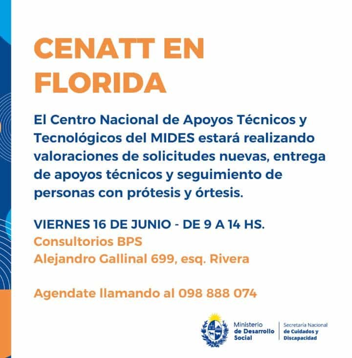 Florida CENATT en Florida 13 de junio de 202313 de junio de 2023 Viernes 16 de julio.Hora 9:00Consultorio BPSGallinal 699 – Esquina Rivera. Relacionado