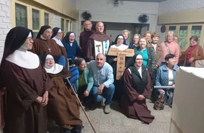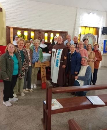 “Estas son las fotos con la Tau peregrina, en la misa celebrada en el Monasterio de las Hermanas Clarisas. En la misa participamos los integrantes de la OFS, fraternidad Hermano Sol, Hermana Luna de Florida. La Eucaristía celebrada en el Jubileo por los 800 años del Tránsito de San Francisco, nos recordó el cuidado de la vocación a la que fuimos llamados y nos comprometió a cuidar la Casa Común, sembrando la Paz y el Bien.” Corresponsal Lilia