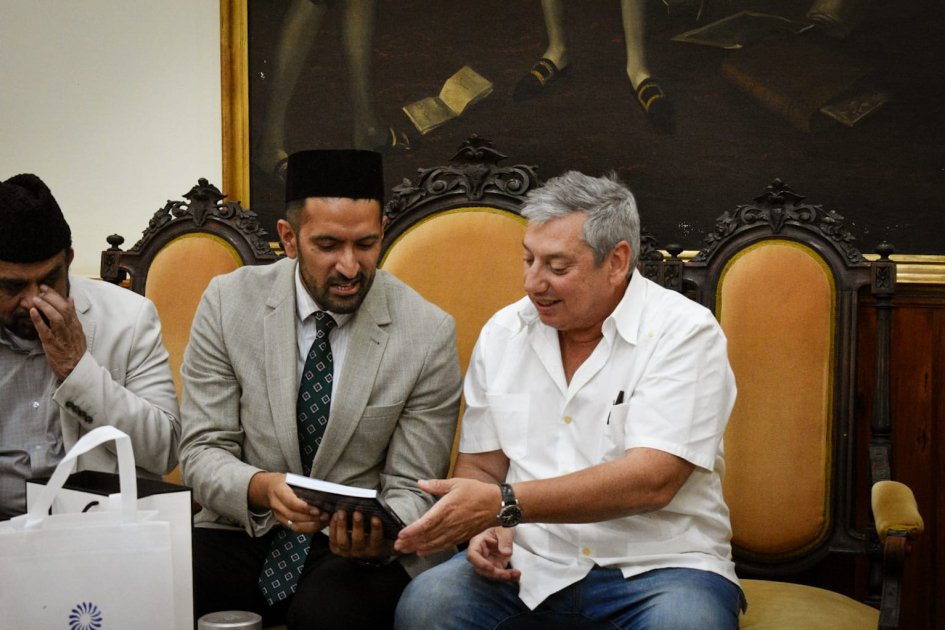 El intendente de Florida, Carlos Enciso, recibió en la Intendencia Departamental a integrantes de la delegación musulmana Ahmadía de la República Argentina, encabezada por Marwan Gill, en el marco de una visita orientada al fortalecimiento del diálogo y el intercambio institucional.