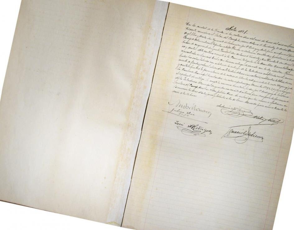 Se adjuntan algunos ejemplos de la tarea que se viene realizando: Actas del Consejo de Administración del año 1920, cuyo libro mide 90 cm x 60 cm; negativos en vidrio de principios del siglo XX; y diapositivas de los años 70 y 80 en Florida.