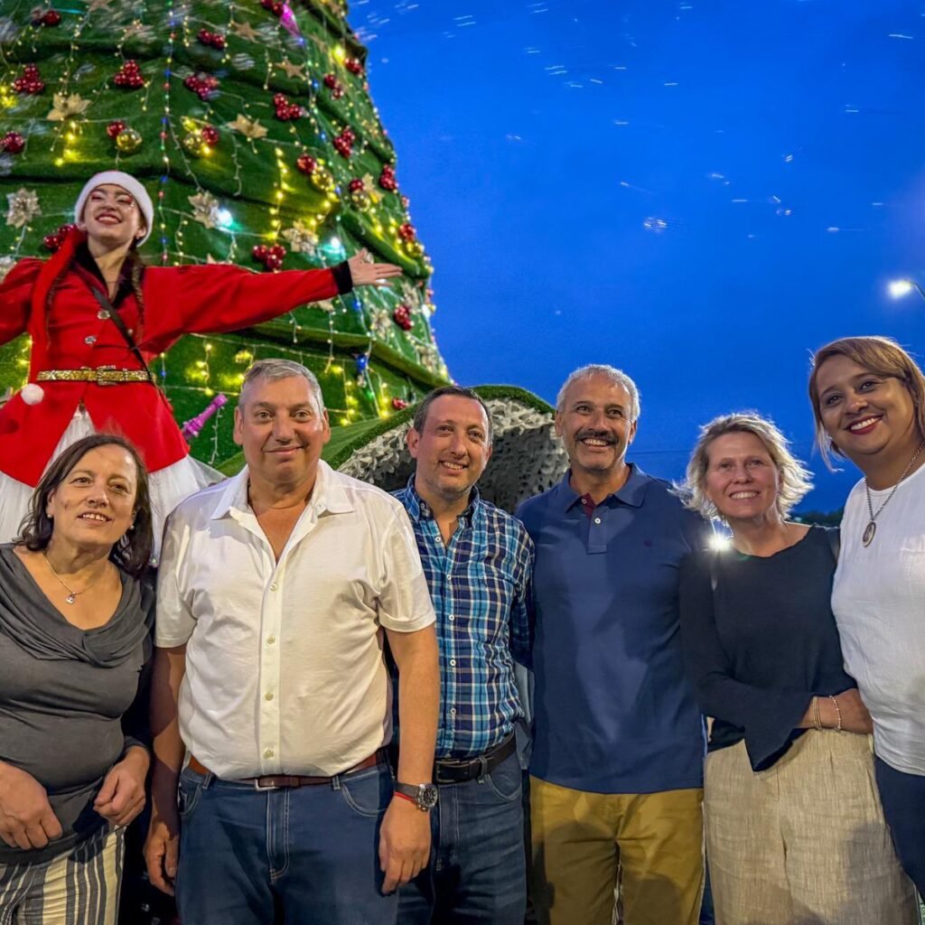 El intendente Carlos Enciso encabezó la ceremonia junto al secretario general, Ec. José Luis Curbelo, y a integrantes de su equipo de gobierno. En un clima distendido y familiar, Enciso invitó a los niños presentes a acercarse y rodear la estructura luminosa para participar del instante en que se activó la llave que encendió el árbol. El gesto, simple y significativo, reforzó el carácter participativo de la celebración y generó un sentido de pertenencia entre los más pequeños.