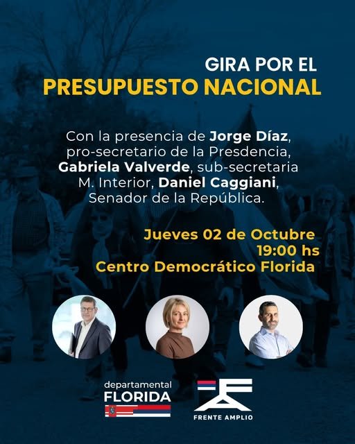 La Mesa Departamental del Frente Amplio de Florida anunció la realización de una actividad abierta para analizar el presupuesto nacional. El encuentro tendrá lugar el jueves 2 de octubre, a las 19:00 horas, en el Club Democrático de Florida.