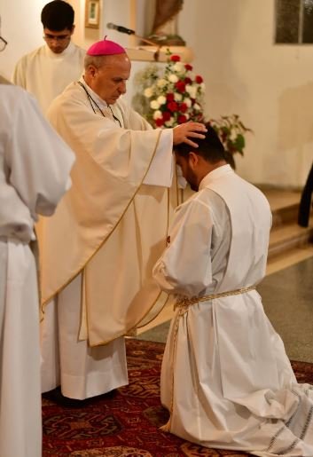 Agradeció a Dios por la vocación, llamada que sintió desde muy pequeño, cuando participaba en las Misas en su país natal. “Igualmente agradezco a mis padres, a mis hermanos y familiares por infundirme valores cristianos y brindarme acompañamiento en mi decisión. Expreso mi profunda agradecimiento a la Iglesia por acogerme como Madre y por los sacramentos. Estoy muy agradecido con monseñor Martín por su acogida y aceptación en la Diócesis de Florida, que me permite avanzar en mi camino vocacional como ministro ordenado, a los presbíteros y diáconos que, como amigos, me siguen acompañando en este proceso. No podría faltar la gratitud profunda a la comunidad parroquial del Carmen, que desde el primer momento de mi llegada a la parroquia siempre me ha apoyado en todo, especialmente con sus oraciones, para perseverar en mi vocación. Hago sensibles agradecimientos a los Peregrinos de Durazno con quienes viví mi primera experiencia de peregrinación en Uruguay.”