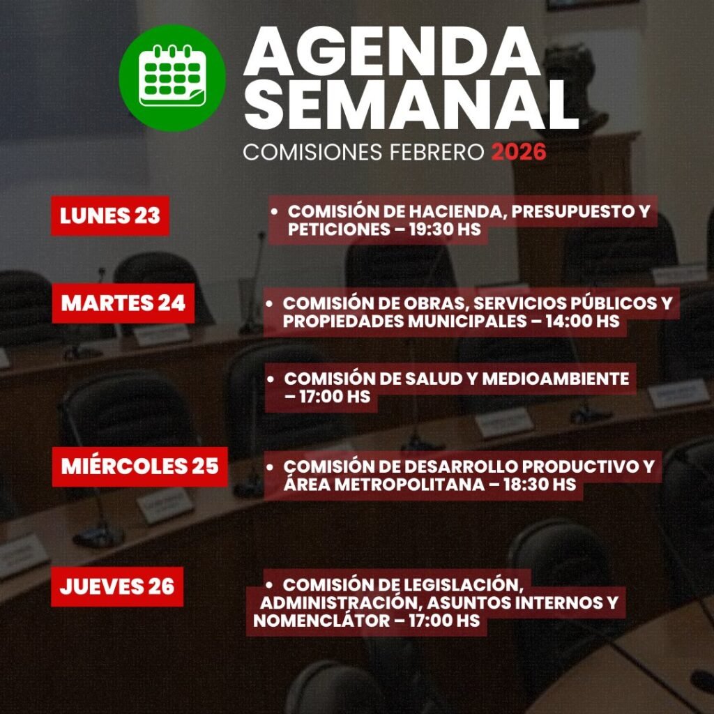 Finalmente, el jueves 26 a las 17:00 horas se reunirá la Comisión de Legislación, Administración, Asuntos Internos y Nomenclátor.