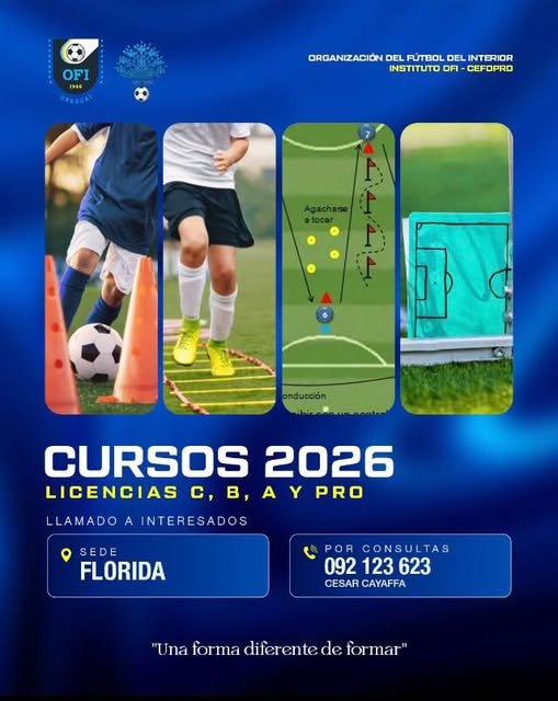 Tribuna OFI: CURSOS 2026 LICENCIA C-B-A Y PRO 14 de octubre de 202514 de octubre de 2025 Llamados a interesados Sede Florida Por Consultas 092123623 (Con César Agustín Cayaffa) Una forma Diferente de Formar Relacionado