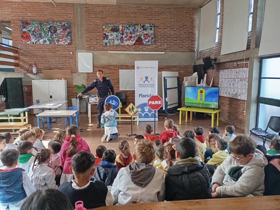 En el marco de las actividades de prevención y concientización que impulsa la Jefatura de Policía de Florida, personal de la Brigada Departamental de Tránsito junto a la Policía Comunitaria Orientada a Solución de Problemas (P.C.O.P.) brindaron una charla informativa sobre seguridad vial en la Escuela N° 4 “Dr. Juan Gugliemetti”.