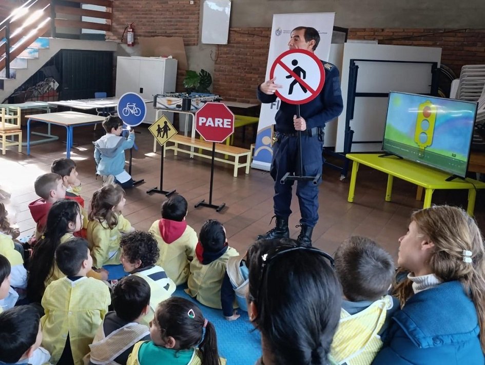 La iniciativa tuvo lugar días atrás y reunió a 78 alumnos, desde inicial hasta segundo año, quienes participaron activamente acompañados por sus docentes. Durante la charla, se abordaron temas fundamentales vinculados a la prevención de accidentes y la importancia de respetar las normas de tránsito para transitar de forma segura en las vías públicas.
