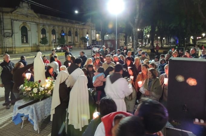 A pesar del frío, el fervor de los presentes generó un clima de unidad y recogimiento. Durante la oración se entregaron velitas, folletos y rosarios para acompañar a quienes los necesitaran.