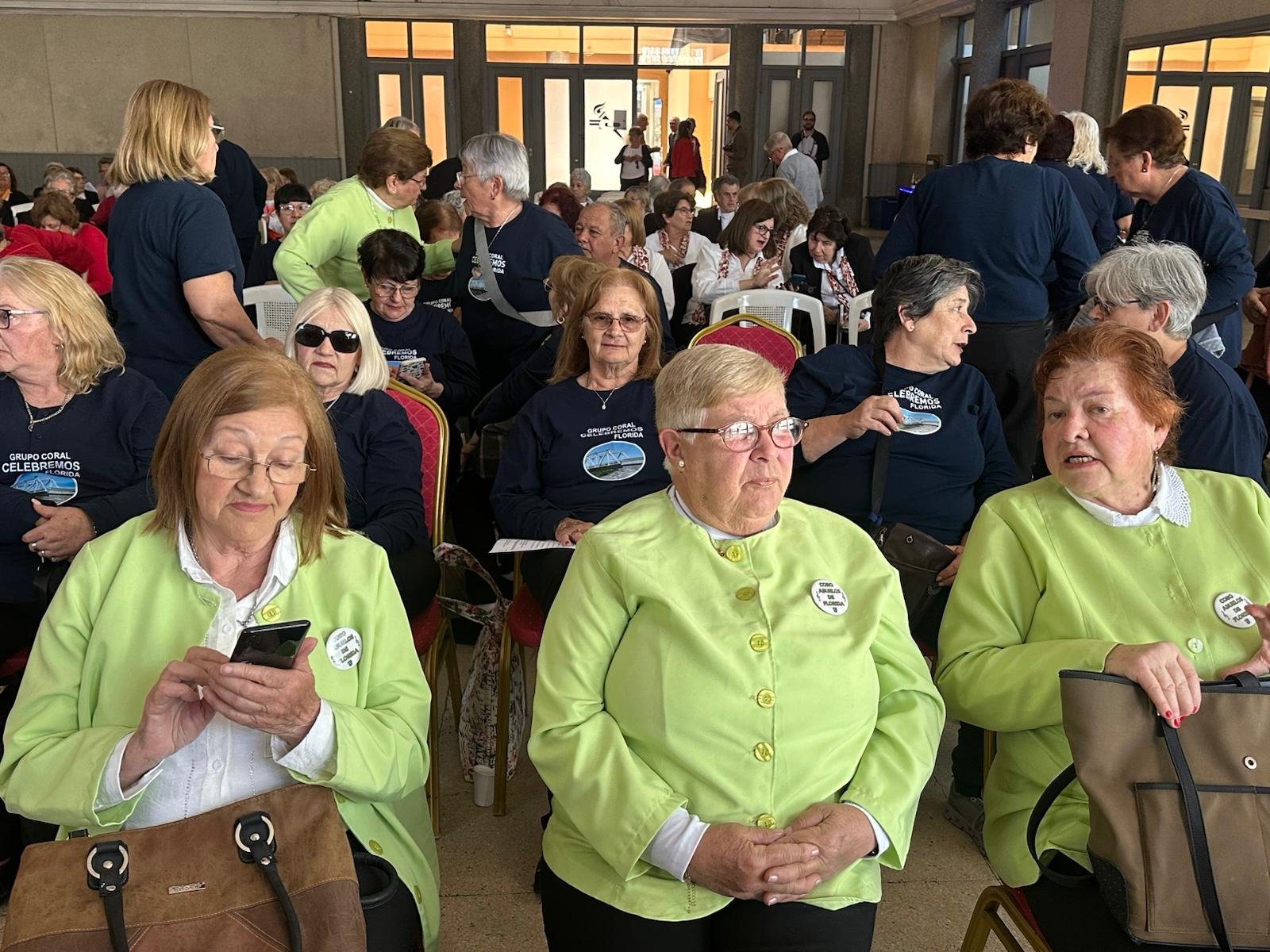 La mayoría son personas mayores, los integrantes de los coros y pasaron una tarde de canto y celebrando el Día Internacional de las Personas Mayores