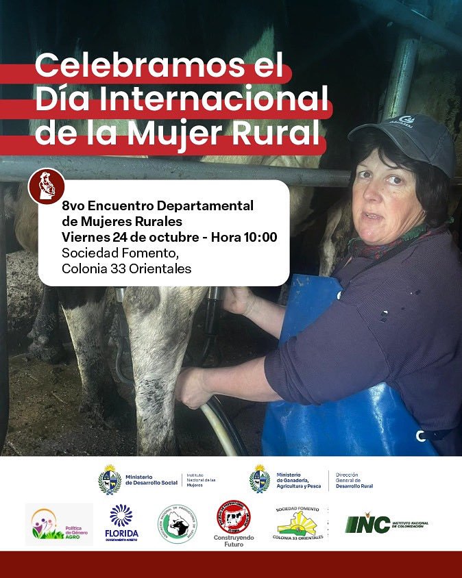 La Sociedad de Fomento de Colonia 33 Orientales será sede este viernes 24 de octubre, a las 10:00 horas, del 8º Encuentro Departamental de Mujeres Rurales.